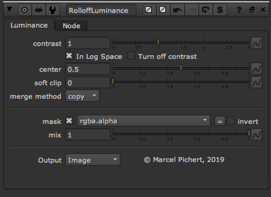 - 'contrast', 'center' and 'soft clip' are picked from the RolloffContrast on the luminance channel.