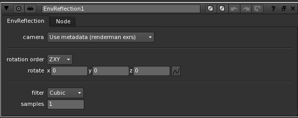 Usage: Connect the node's three inputs as labeled. By default, the node will try to take the camera position (needed to figure out the reflection vector) from the metadata of its first input (normal pass). This only works for EXR's rendered using renderman. If no valid metadata is found, the node will show an error message.