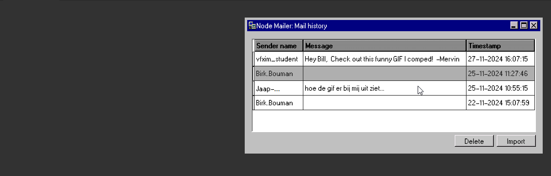 A Nuke plugin for mailing nodes over the local network, themed to look like the world's greatest operating system: Windows 95! Check out the launch trailer!
