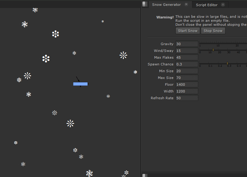 This script generates animated snow flakes in the Node Graph