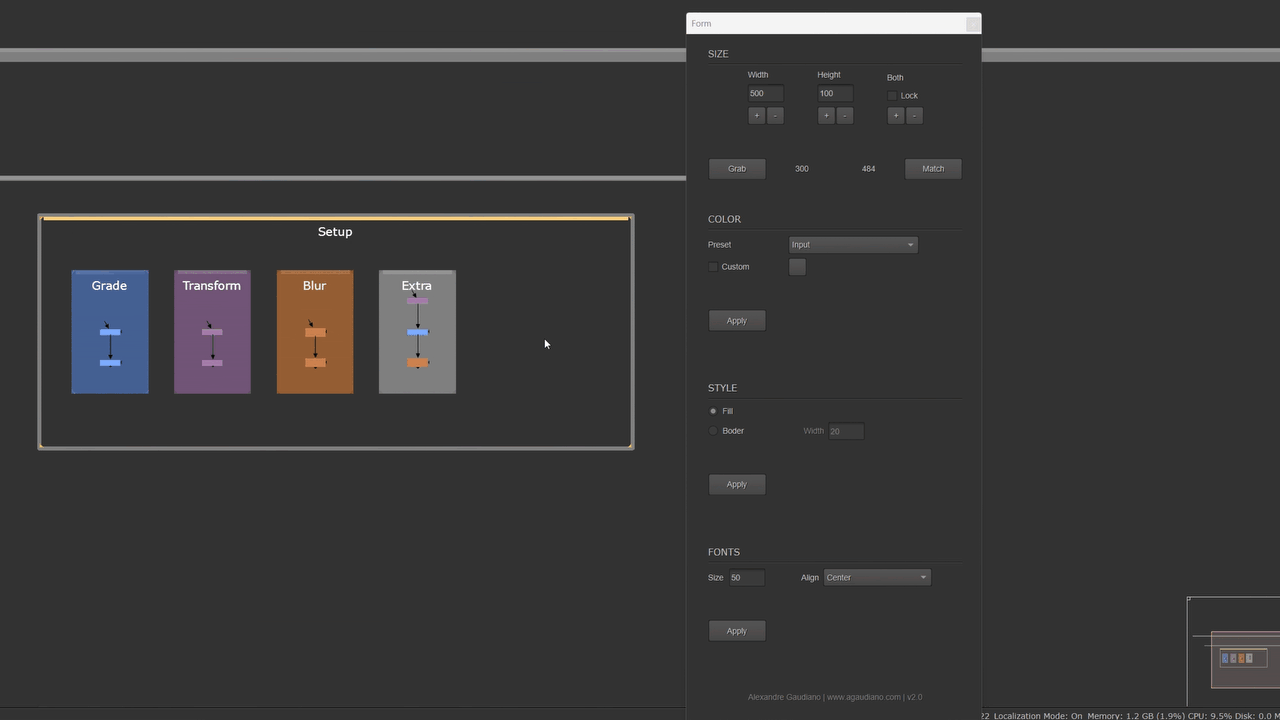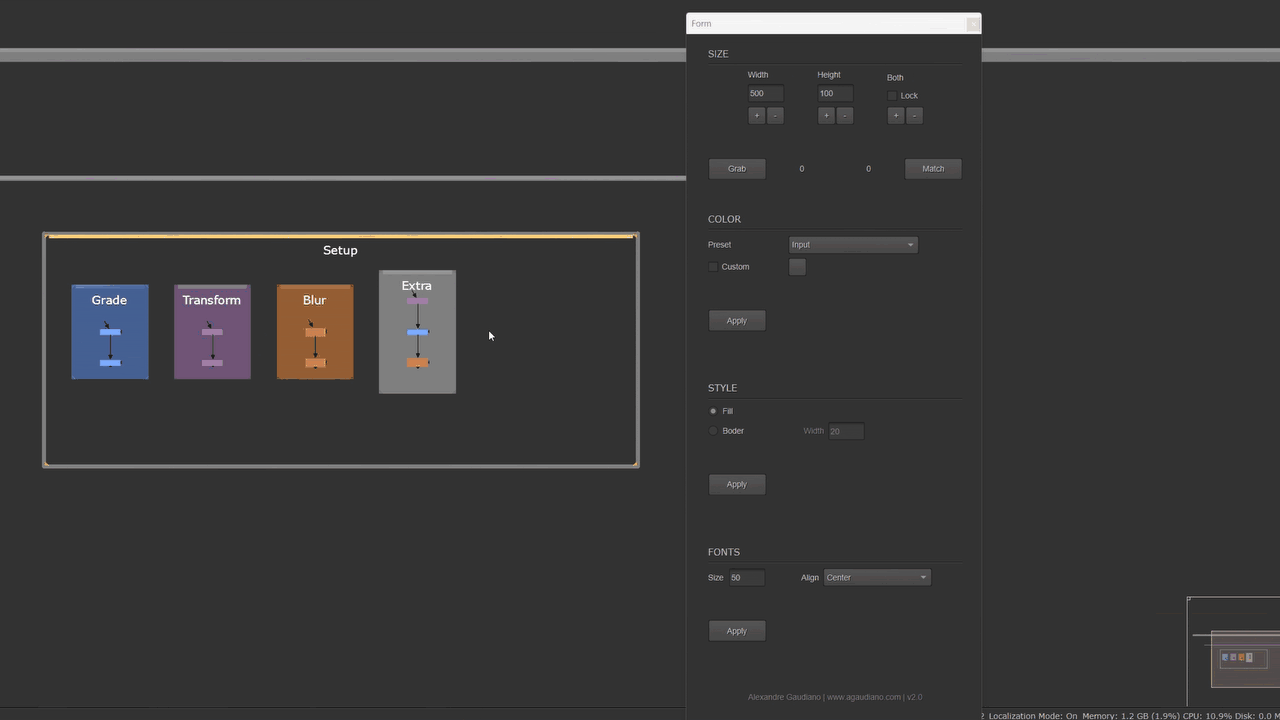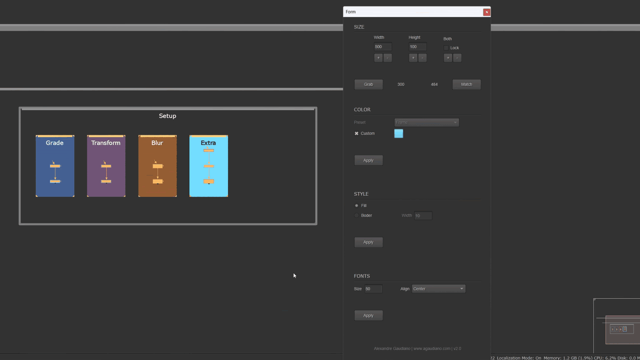 The second window allows you to fine-tune your backdrops. You can resize them using a feature inspired by Maya’s Get/Set Texel Density, making scaling fast and intuitive. You can also change colors, including a custom color option, along with several additional controls for precise adjustments.