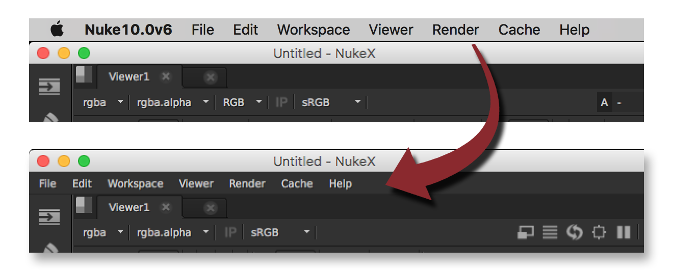 Prevent Nuke from using the native OS toolbar (like on macOS) and use Nuke's Qt toolbar instead.